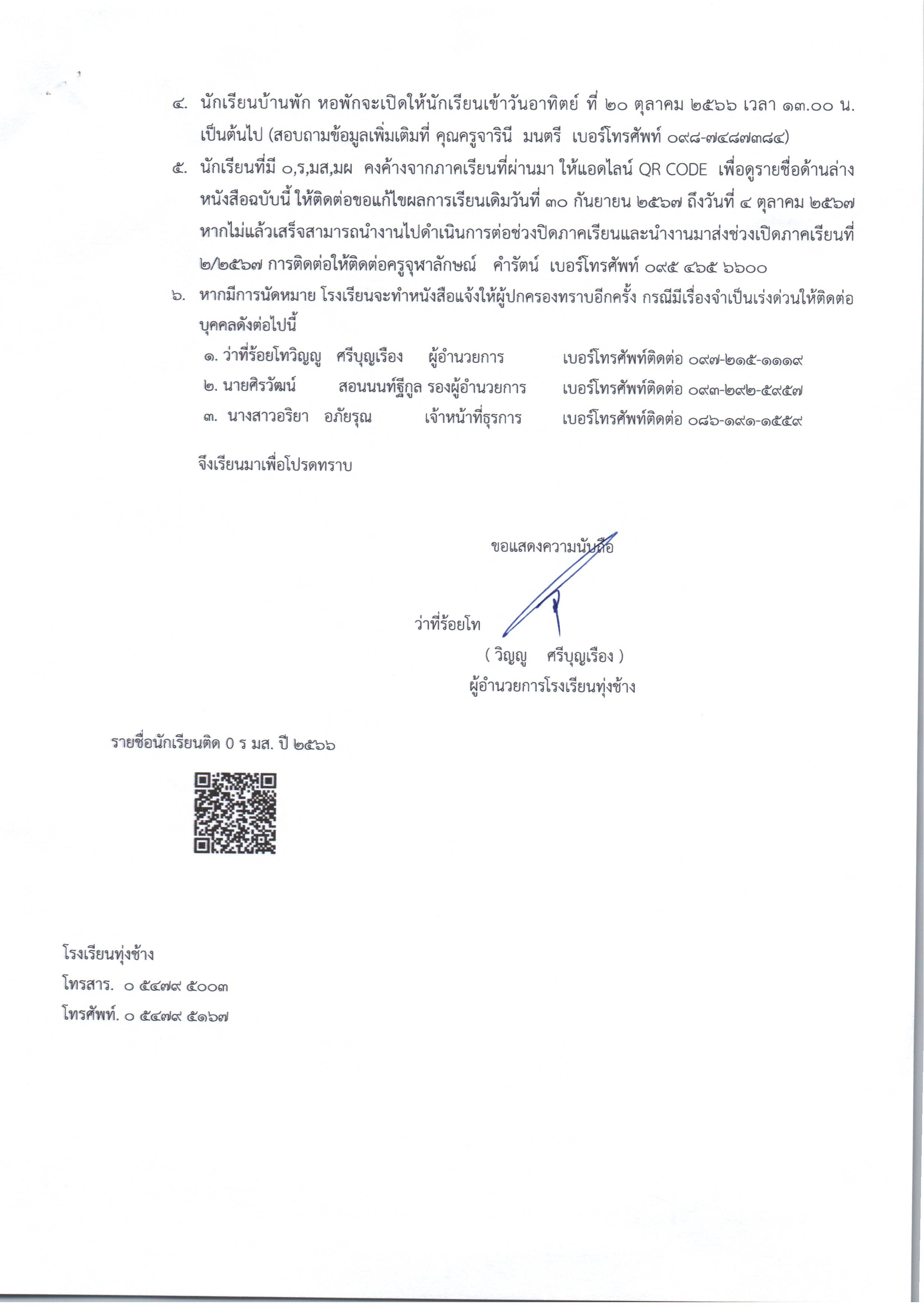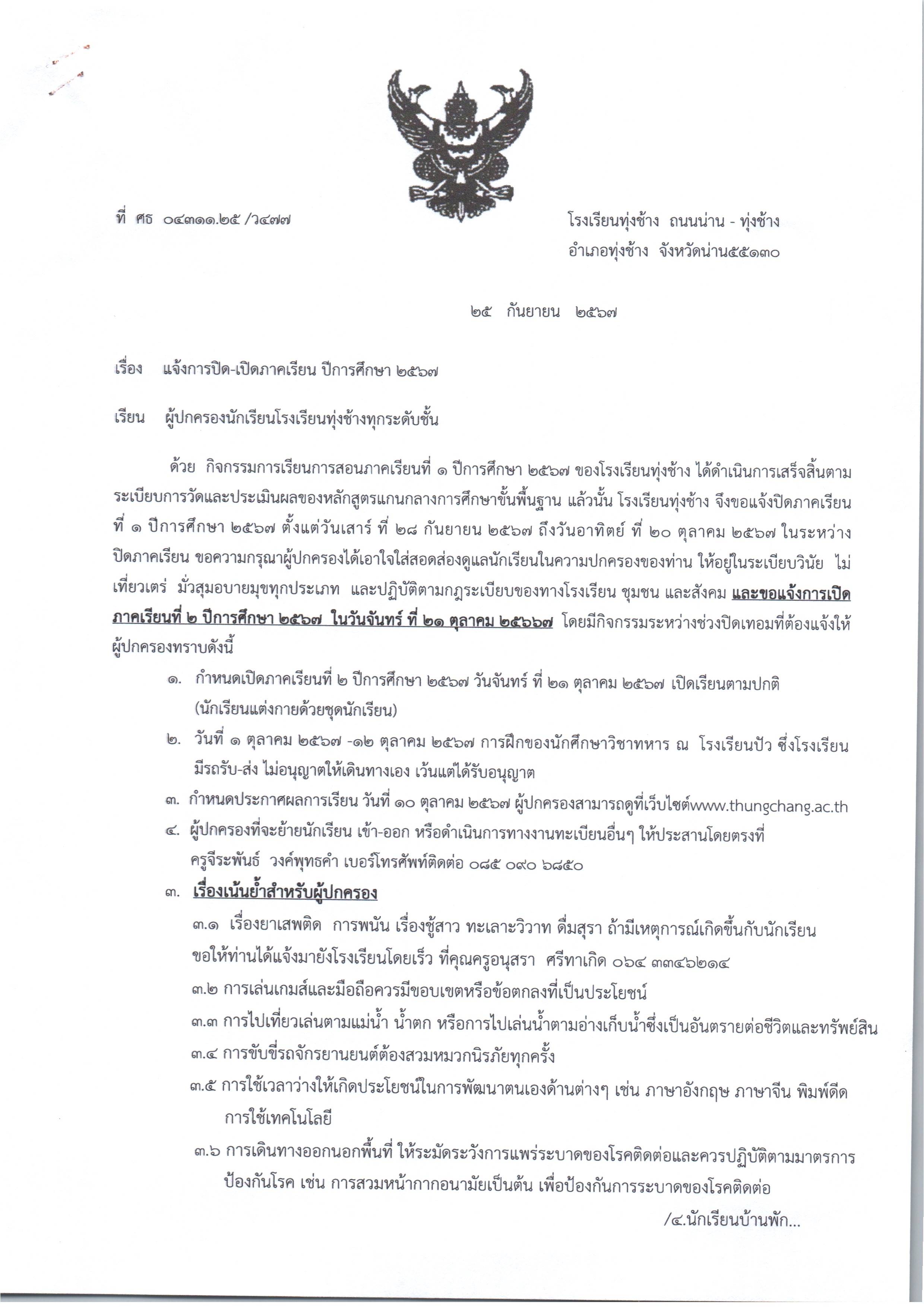 เเจ้งการปิดภาคเรียนที่ 1 และเปิดภาคเรียนที่ 2 ปีการศึกษา 2567