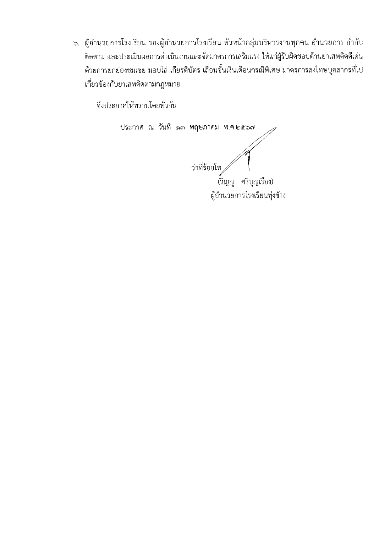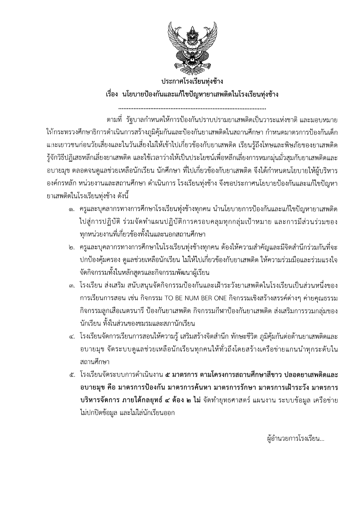 1. เรื่อง นโยบายป้องกันและแก้ไขปัญหายาเสพติดในโรงเรียนทุ่งช้าง