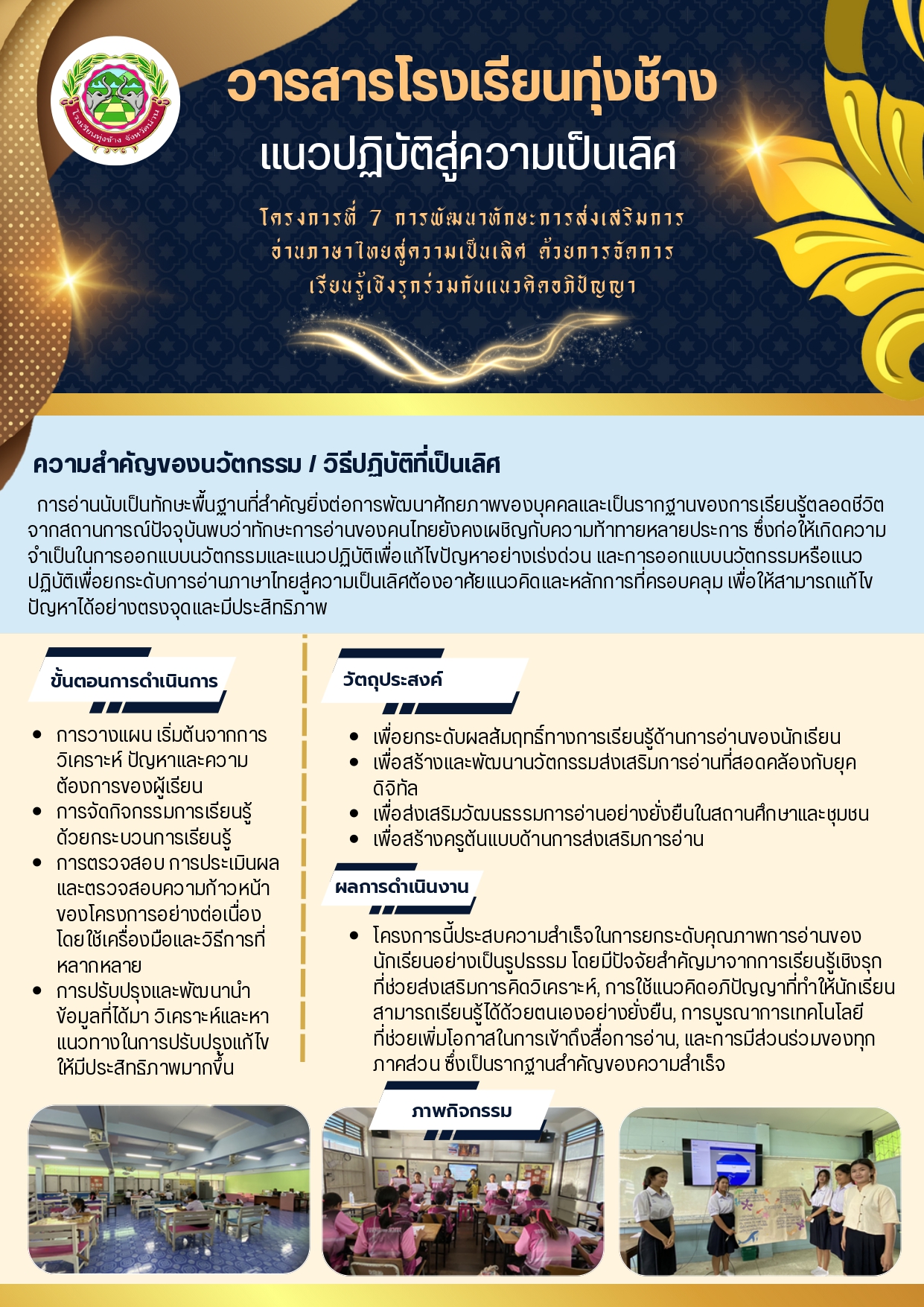 แนวปฏิบัติที่เป็นเลิศ (Best Practices) การพัฒนาทักษะการส่งเสริมการอ่านภาษาไทยสู่ความเป็นเลิศ ด้วยการจัดการเรียนรู้เชิงรุกร่วมกับแนวคิดอภิปัญญา