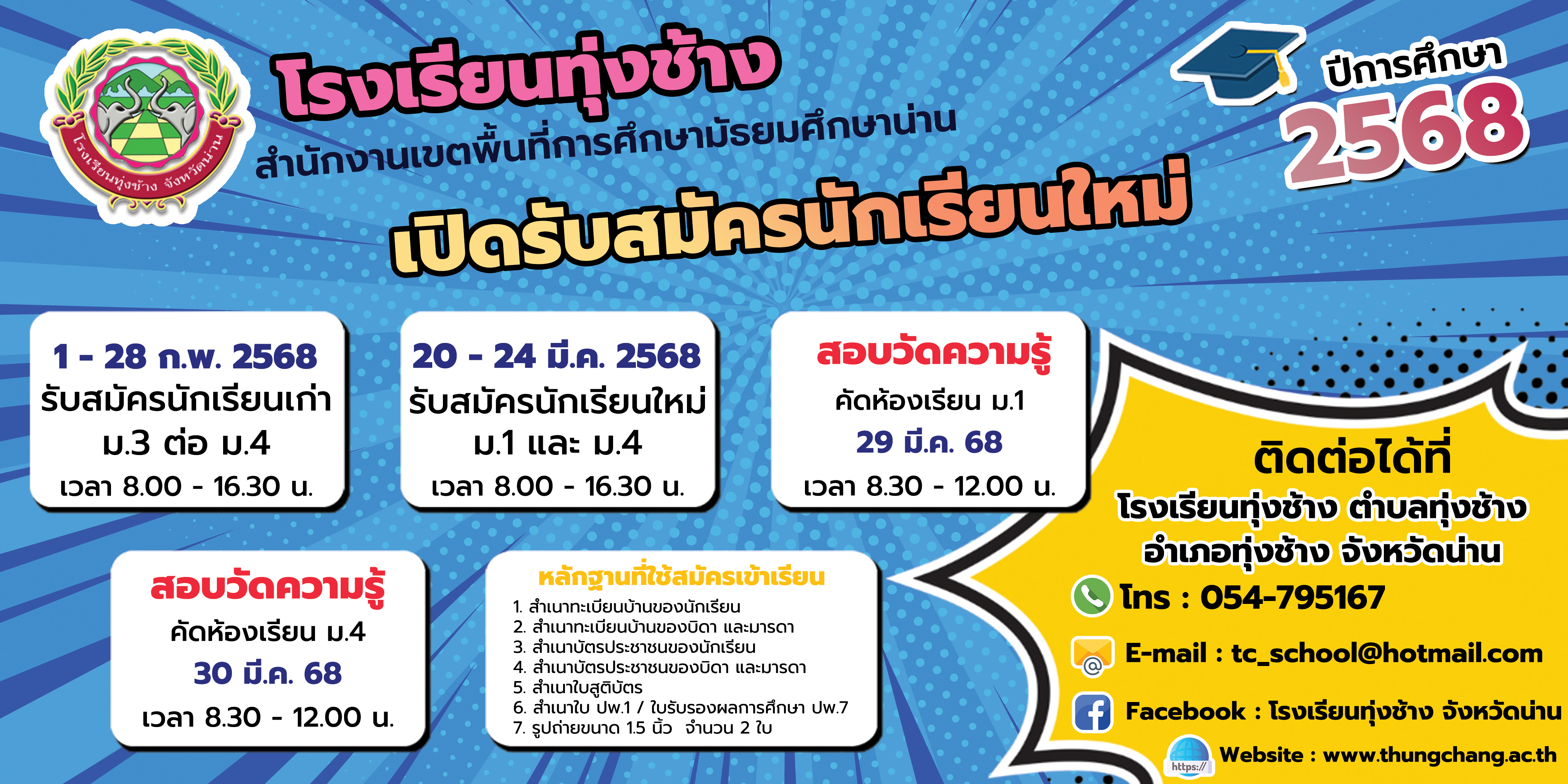 ประกาศรับสมัครนักเรียนเข้าศึกษาต่อชั้น ม.1 และ ม.4 ปีการศึกษา 2568