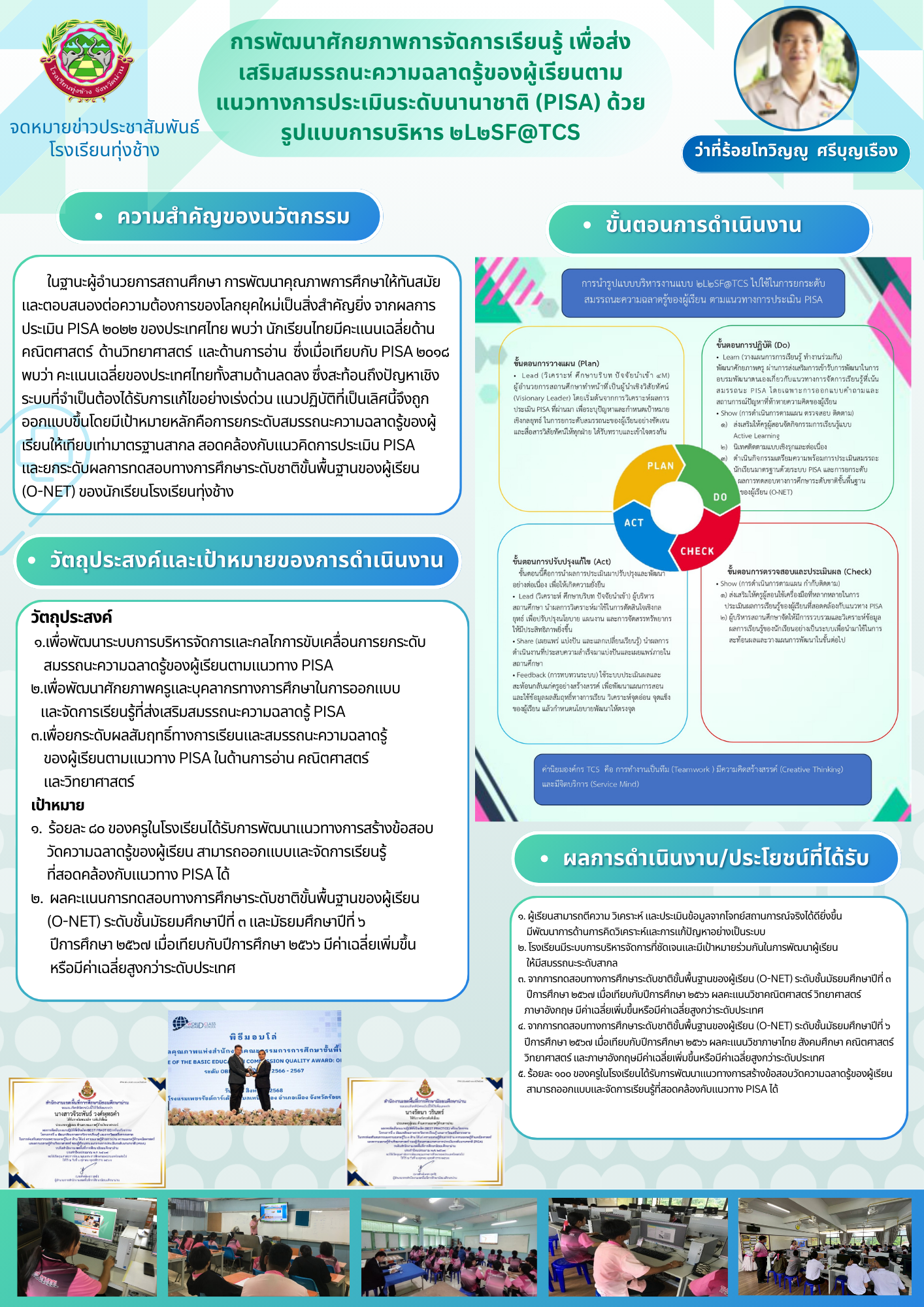 แนวปฏิบัติที่เป็นเลิศ (Best Practices) การพัฒนาศักยภาพการจัดการเรียนรู้เพื่อส่งเสริมสมรรถนะความฉลาดรู้ของผู้เรียนตามแนวทางการประเมินระดับนานาชาติ (PISA) ด้วยรูปแบบการบริหาร 2L2SF@TCS
